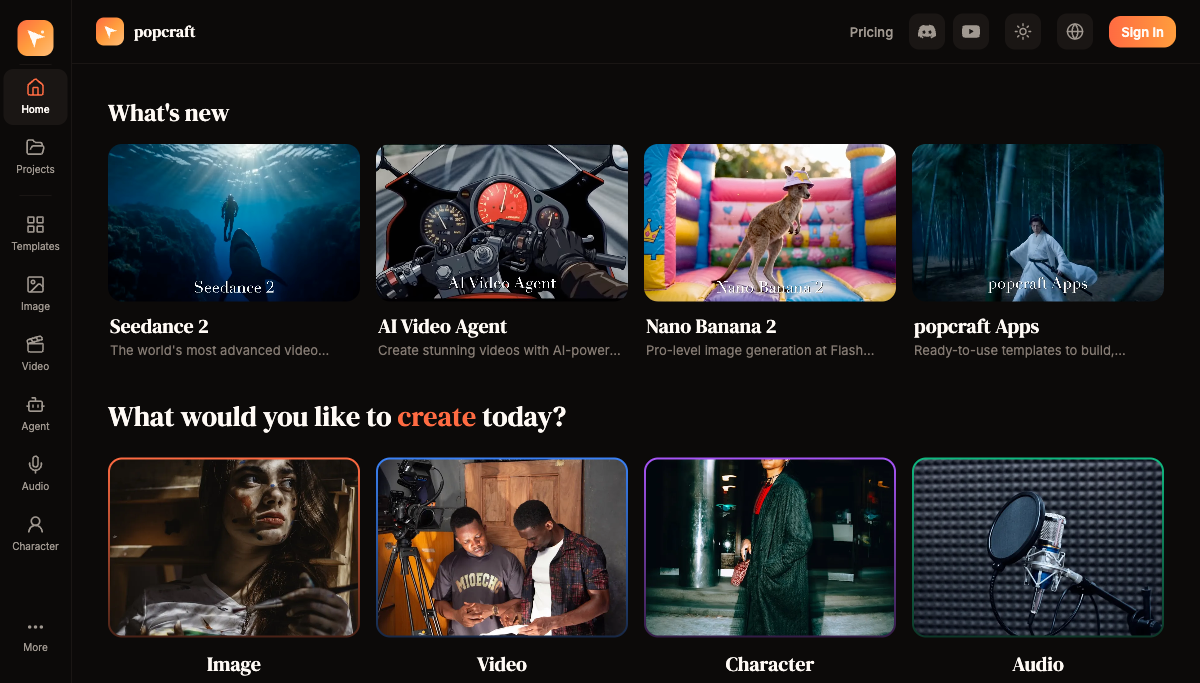 Popcraft brings together the most advanced AI creative tools in a single platform. Whether you're creating images, videos, audio, avatars, or complete multi-scene productions, there's a tool designed for your workflow. Here's everything you need to know.